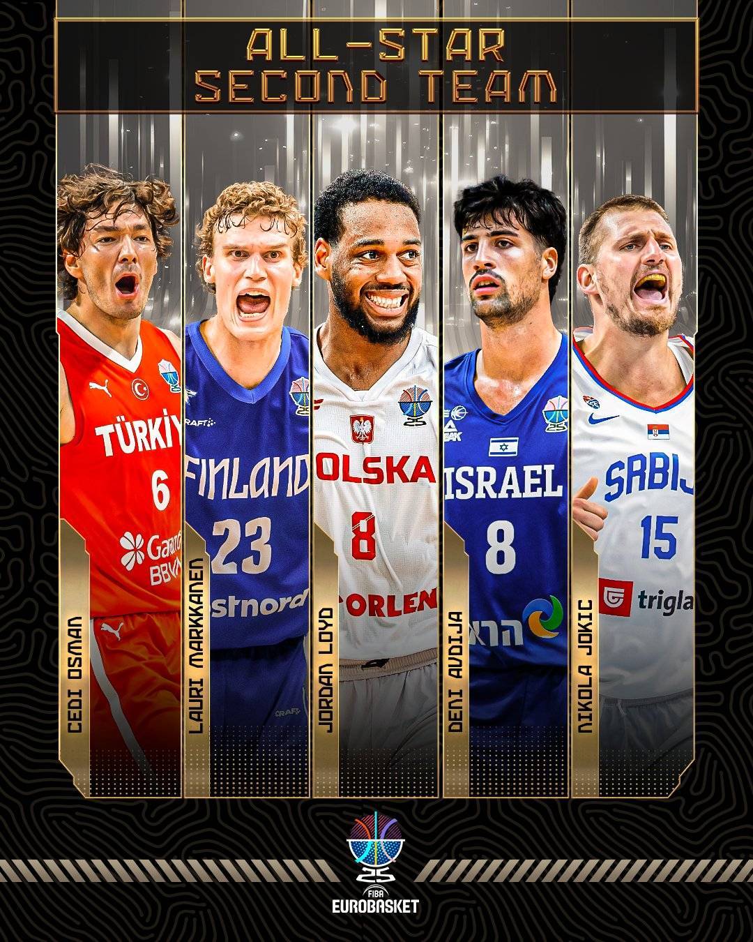 切迪-奥斯曼(土耳其)、劳里-马尔卡宁(芬兰)、乔丹-劳埃德(波兰)、德尼-阿夫迪亚(以色列)、尼古拉-约基奇(塞尔维亚)